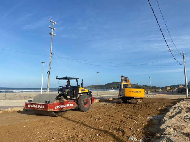 A pavimentação asfáltica da orla da Praia do Mar Grosso segue em nova etapa nesta semana. Com parte da pista já asfaltada, entre a Praça Seival e a Praça do Vila, agora a outra pista já está com a sub base pronta. A próxima etapa é a camada de asfalto