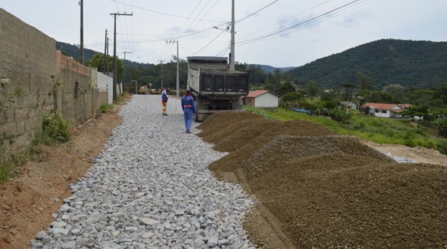 Um novo trecho da rua Dom Anselmo Pietrulla, no Sertão dos Corrêa, é preparado para receber pavimentação asfáltica. Nesta quarta-feira (15), a empresa Setep deu continuidade aos trabalhos de colocação da base sobre a camada de pedras do tipo macadame.