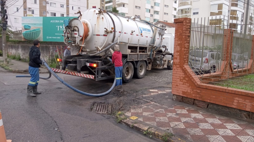 Também foi feita a intervenção nas bocas de lobo alagadas no Centro.