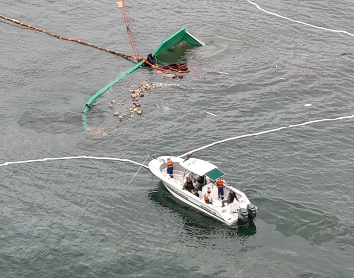 Foto: Reprodução O instituto de Meio Ambiente (IMA) e a Polícia Militar Ambiental acionaram a SCPAR Porto de Imbituba e o Porto de Laguna para ajudar nos trabalhos de rescaldo do acidente que envolveu uma embarcação de Itajaí no município do Sul.