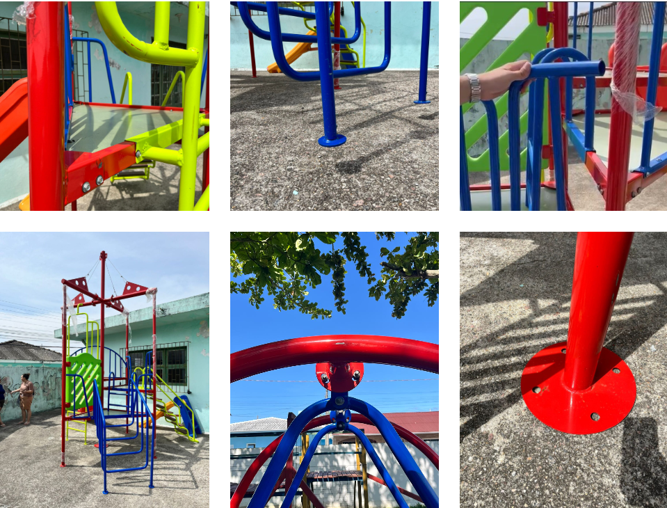Inúmeros erros durante o processo de contratação e instalação indicam que os equipamentos não possuem garantia de segurança para utilização. Problemas como oxidação em elementos de solda e ao longo de elementos metálicos de estrutura, falta de fixação de base e fixação deficitária de elementos metálicos, confirmam a insegurança da utilização das estruturas de parquinho.