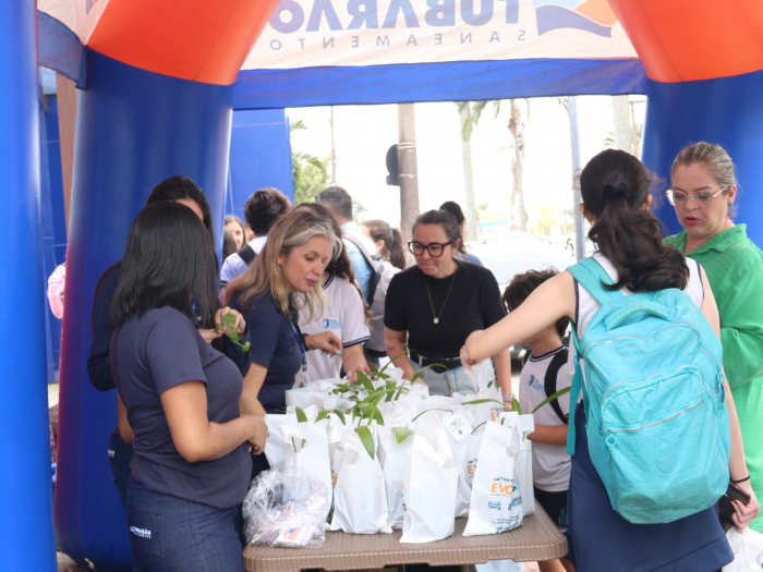 Para conscientizar a população sobre a importância de plantar árvores e cuidar do ecossistema, a Tubarão Saneamento realizou nesta segunda-feira (23), um pedágio ambiental no Colégio Santíssimo Sacramento. Durante a ação, a empresa distribuiu mudas de árvores e kits de sementes de girassol e margaridas para as crianças e seus pais.