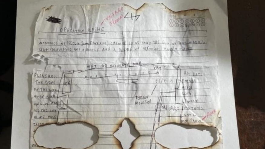 Na carta, intitulada “Operation Rache” (Operation significa operação, em inglês, e Rache, vingança em alemão), o adolescente desenhou um mapa da escola, sinalizou a localização das câmeras de segurança e escreveu “molotov” nas duas saídas da escola.