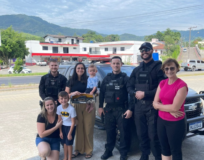 “Levamos um presente para a família para simbolizar que a polícia penal está presente nas rodovias para cumprir sua missão e também prestar auxílio à sociedade catarinense. Reforçamos que a população pode contar com a polícia penal seja para qual for a missão”, afirma o policial Ramon Luiz Alves.
