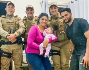Em seguida orientaram os pais Lucas e Alice a levar a bebê, a pequena Liz, ao hospital para os cuidados necessários.