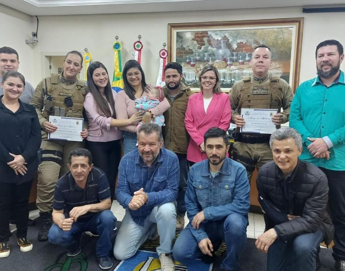 A Câmara de Vereadores de Capivari de Baixo entregou uma moção de aplausos aos policiais militares Sargento Eliezer Marques Costa, Sargento Bruno da Silva e Cabo Karina Estevam do Carmo, do pelotão do município em reconhecimento ao ato de salvamos de um bebê de 3 meses.