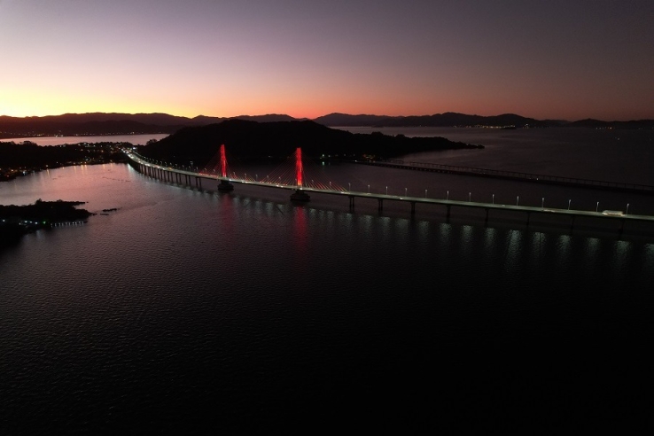 A CCR ViaCosteira faz homenagem a Rainha Elizabeth II através da iluminação da Ponte Anita Garibaldi com as os estais nas cores do Reino Unido a partir desta sexta-feira (09) até domingo (11).