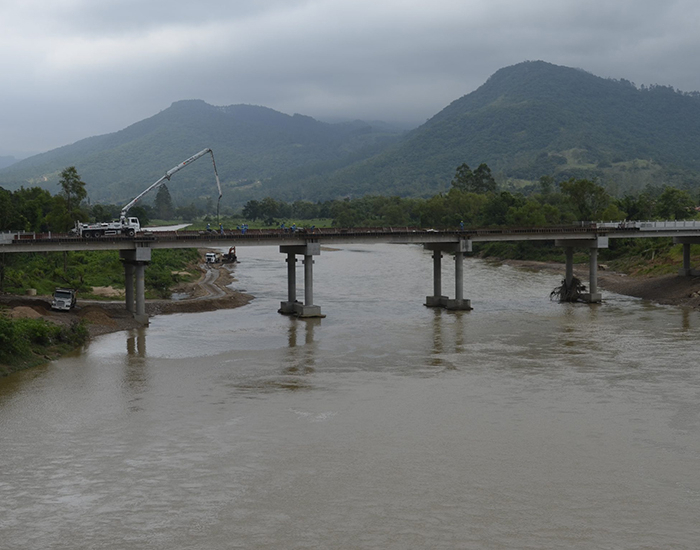 A última etapa de concretagem do pavimento por onde passarão os veículos foi finalizada já em janeiro. Na margem direita, o aterro para acesso à cabeceira da ponte está praticamente pronto. No lado esquerdo, a terraplanagem está em andamento. Em ambas as margens o acesso à travessia será pavimentado.