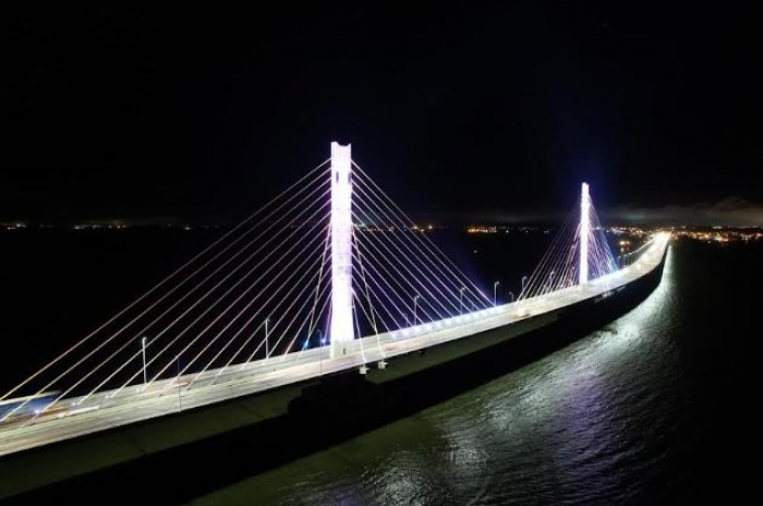 Após ficar bicolor em verde e velho por ocasião das festividades de Natal, a Ponte Anita Garibaldi está com os estais iluminados na cor branca.