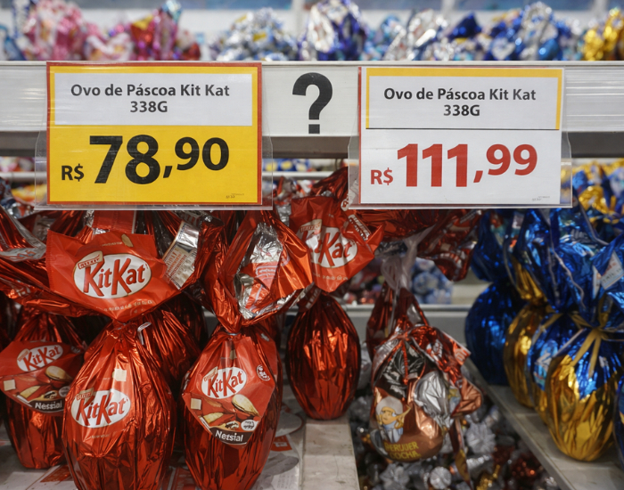 O maior destaque foi o ovo Kit Kat de 338 gramas, que apresentou diferença de até R$ 33,09 entre o menor e o maior preço encontrado. Outros produtos também chamaram atenção, como o Ferrero Rocher 225 g (R$ 29,09 de diferença), Lacta Diamante Negro e Laka 494 g (R$ 30,10) e versões temáticas como Barbie e Hot Wheels, ambas com variação superior a R$ 27. Até opções menores, como o Kinder de 100 g, chegaram a ter diferença de mais de R$ 20 entre lojas.