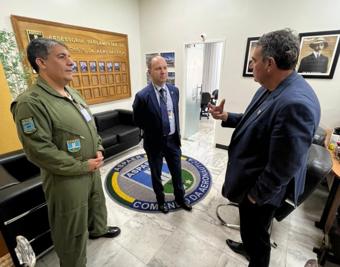 Agnaldo Filippi apresentou as ideias ao chefe da Assessoria Parlamentar e Relações Institucionais do Comandante da Aeronáutica, Brigadeiro do Ar Reginaldo Pontirolli, e ao Assessor de Relacionamento Institucional, Coronel Aviador Érick Batista dos Santos.