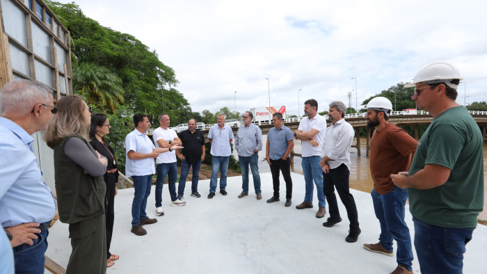 Nesta quinta-feira (26), o prefeito Estêner Soratto e o vice-prefeito Denis Matiola realizaram vistoria nas obras de reforma e revitalização do deck do casario da beira-rio, no Centro de Tubarão. A visita contou com a presença de representantes do Conselho de Entidades de Tubarão (Conset), além do secretário municipal de Planejamento e Urbanismo, Felipe Nascimento, e do secretário adjunto, Elom Alano.