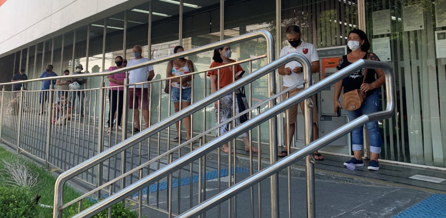 Durante a operação de fiscalização realizada, foram recolhidos 19 bilhetes de senha, com horário de chegada e horário de início de atendimento, sendo que em todos houve o descumprimento do tempo de espera, que era de 30 minutos, pois era dia de pagamento dos aposentados e pensionistas.
