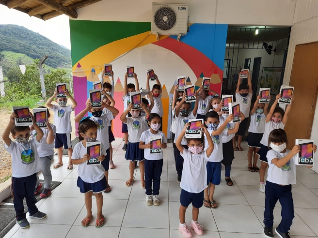Para promover a inclusão digital na rede municipal de Ensino, a Fundação Municipal de Educação entregou 350 tablets para as 14 unidades de educação básica. Cada uma delas receberá 25 aparelhos, que ficarão de maneira permanente na escola para as atividades determinadas e supervisionadas pelos professores.