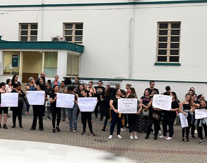 Dezenas de profissionais de enfermagem do Hospital Nossa Senhora da Conceição (HNSC) se reuniram em frente ao portão dos fundos da instituição para um protesto no final da tarde desta terça-feira, dia 24, em Tubarão.