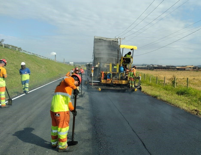 Laguna: restauração de pavimento entre os kms 314 e 312 – sentido norte;