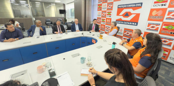 Foto: Airton Fernandes/Defesa Civil A atualização do projeto de redragagem do Rio Tubarão foi pauta de reunião na Secretaria de Proteção e Defesa Civil nesta quarta-feira (9), em Florianópolis. Uma apresentação foi feita pelo Centro de Estudos e Pesquisas em Engenharia e Defesa (Ceped) da Universidade Federal de Santa Catarina (Ufsc), responsável pela revisão do documento.