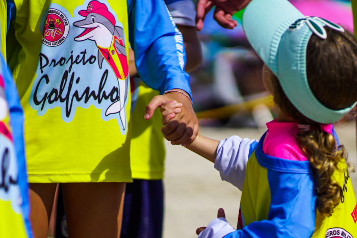 Foto: Tiago Ghizoni/SECOM Com o objetivo de conscientizar e prevenir sobre os perigos dos ambientes aquáticos, o Corpo de Bombeiros Militar de Santa Catarina (CBMSC) realiza desde 1998 o Projeto Golfinho. Em 25 anos de projeto, foram formadas cerca de 100 mil crianças. O programa promove a cidadania e os cuidados com o meio ambiente, o Programa busca conscientizar as crianças de uma forma lúdica, alternando momentos de aprendizagem e diversão, para que tomem atitudes preventivas e que disseminem essas ideias entre seus familiares e pessoas da comunidade.