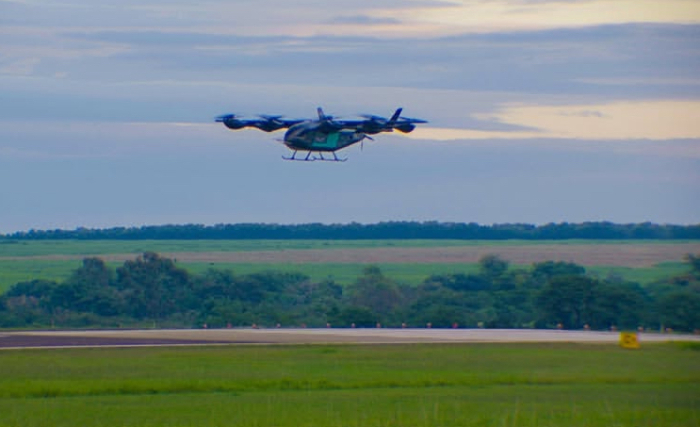 Popularmente chamados de carros voadores, os eVTOLs (veículos elétricos de pouso e decolagem vertical) são produzidos em Taubaté (SP), em uma planta com capacidade para fabricar até 480 unidades por ano. Os veículos continuam em fase de testes e devem entrar em operação em 2027.