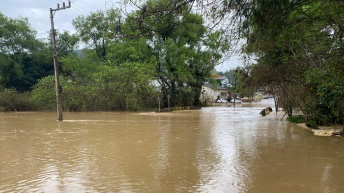 Rua Wenceslau Borini, no bairro Canta Galo (Foto: Rafael Figueiredo Constante, PMRS) Rio do Sul voltou à situação de enchente nesta terça-feira (28), a sétima apenas em 2023. Com o nível do rio acima dos 6,5 metros desde às 16h, o que configura uma cheia, a cidade volta a sofrer com as chuvas depois de amargar perdas milionárias nas últimas semanas pelo mesmo motivo.