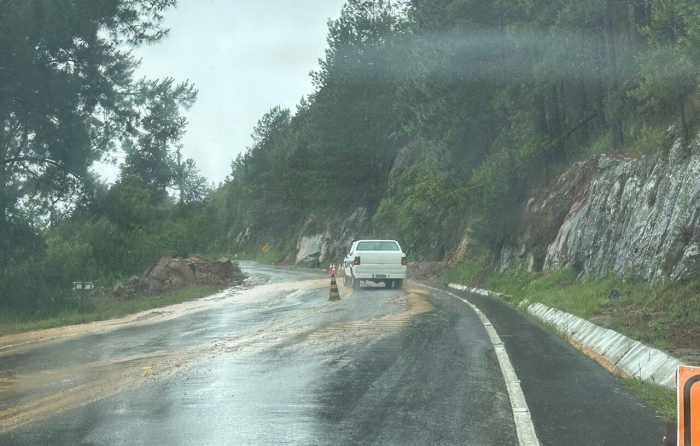 Foto: Letícia Meurer/Rádio Gralha FM A rodovia SC-110, entre os municípios de Urubici e São Joaquim, voltou a ser interditada nesta sexta-feira (03) após apresentar alto risco de deslizamentos de terra devido às fortes chuvas. No início de outubro, o local já havia sido bloqueado após quedas de árvores e rachaduras.