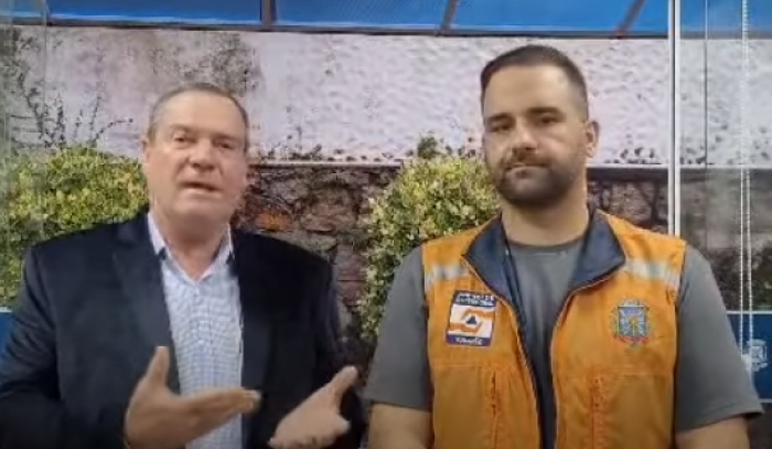 O prefeito interino Gelson Bento e o gestor coordenador de Proteção e Defesa Civil Diego Goulart gravaram uma mensagem à população tubaronense em relação às precauções que estão sendo tomadas pela prefeitura em relação aos possíveis efeitos que a cidade possa vir a sofrer em virtude da passagem de um ciclone extratropical que, conforme anunciado à exaustão pelos institutos de Climatologia e Meteorologia desde a semana passada, atua desde esta quarta-feira (12) na Região Sul do Brasil.