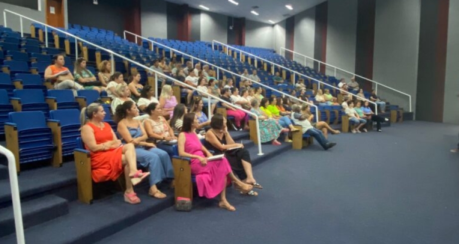 Servidores do setor administrativo da Fundação Municipal de Educação participaram de uma reunião no teatro da Arena Multiuso Prefeito Estêner Soratto da Silva nesta quinta-feira (2). Na pauta estavam o balanço de 2022 e algumas metas para o ano letivo de 2023.