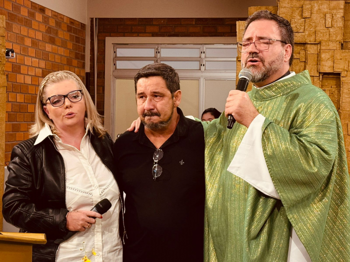 Foto: Reprodução Na última semana, um testemunho emocionado tocou a comunidade presente na Igreja Santa Terezinha do Menino Jesus, quando Rosemary Schotten, contou a história de recuperação de seu marido que surpreendeu inclusive os médicos de Tubarão. O que aconteceu foi que Fabrício Constantino, teve complicações após uma cirurgia, que enfrentou uma colangite, evoluindo para uma infecção generalizada, um choque séptico e até mesmo uma parada cardíaca.