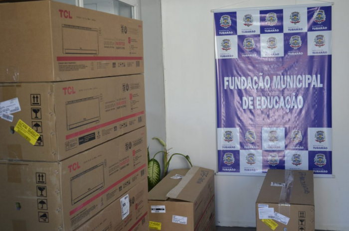 A entrega dos aparelhos ocorreu no almoxarifado central da Prefeitura e reuniu gestores da Fundação Municipal de Educação e diretores das três escolas contempladas.