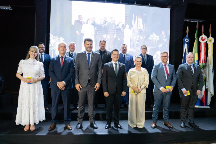 Logo depois, já na Arena, aconteceu a sessão solene de posse. A ação teve início com os vereadores eleitos que, por sua vez, empossaram o novo prefeito e seu vice, Denis Matiola. Na sequência, os 10 novos secretários foram oficialmente nomeados.