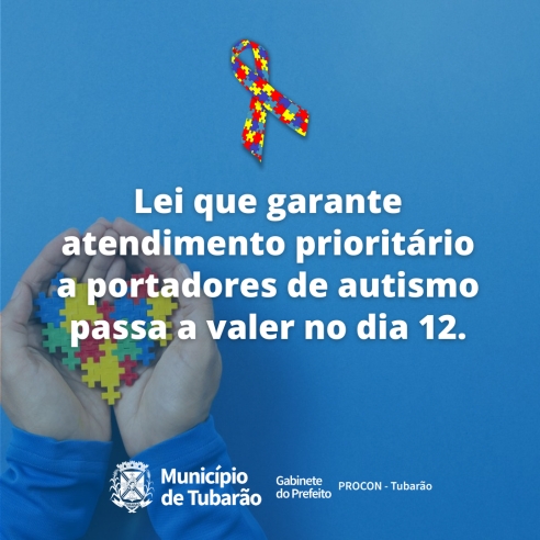 O Decreto nº 5.988, de 12 de agosto de 2021, que obriga os estabelecimentos públicos e privados de Tubarão a inserir nas placas de atendimento prioritário o símbolo mundial do autismo, entrará em vigor no dia 12 de dezembro de 2021.
