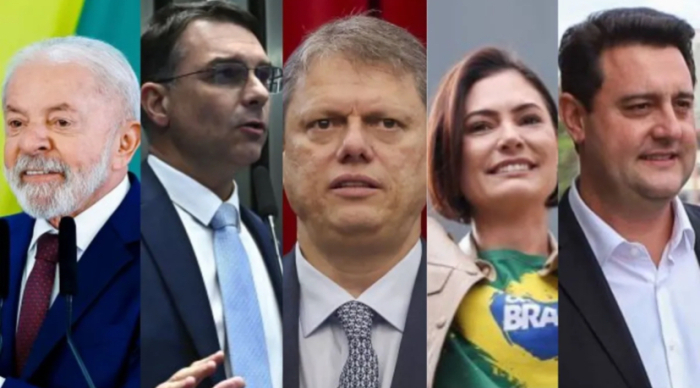 O presidente Luiz Inácio Lula da Silva (PT) empata tecnicamente com Flávio Bolsonaro (PL-RJ), Tarcísio de Freitas (Republicanos), Michelle Bolsonaro (PL) e Ratinho Junior (PSD-PR) em eventual segundo turno na disputa pela Presidência da República. Os dados são de levantamento do instituto Paraná Pesquisas divulgado nesta sexta-feira (26).