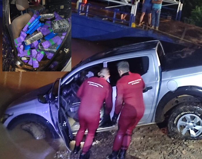 Mergulhadores do Corpo de Bombeiros e uma máquina da prefeitura local retiraram a picape da água. Dentro dela, havia grande quantidade de maconha que, após a secagem, pesou 776 quilos.