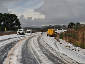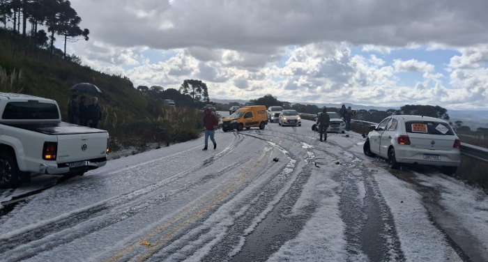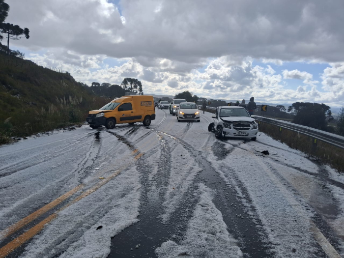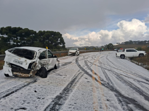 Na tarde desta segunda-feira (09), a guarnição de serviço deslocava-se para o atendimento de uma ocorrência no município de São Joaquim quando se deparou com uma intensa tempestade de granizo. Na sequência, se deparou com um acidente de trânsito que envolveu cinco veículos.