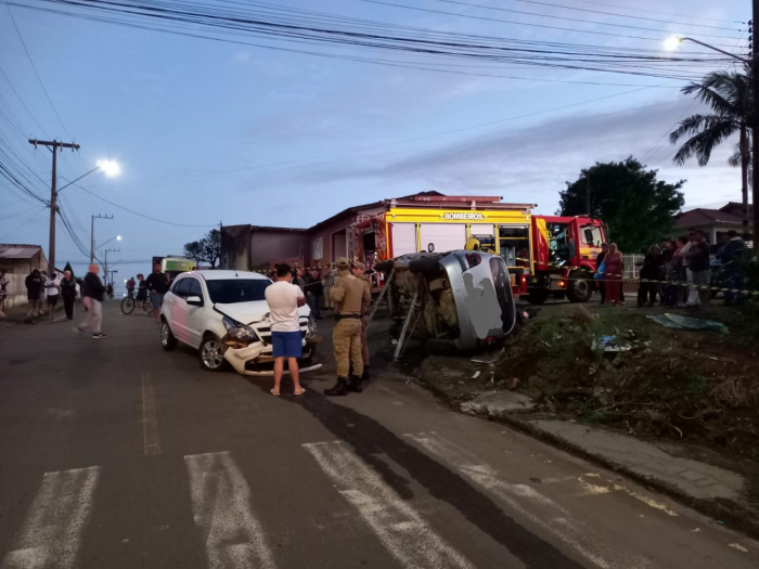 Um dos veículos envolvidos na ocorrência ficou lateralizado na pista