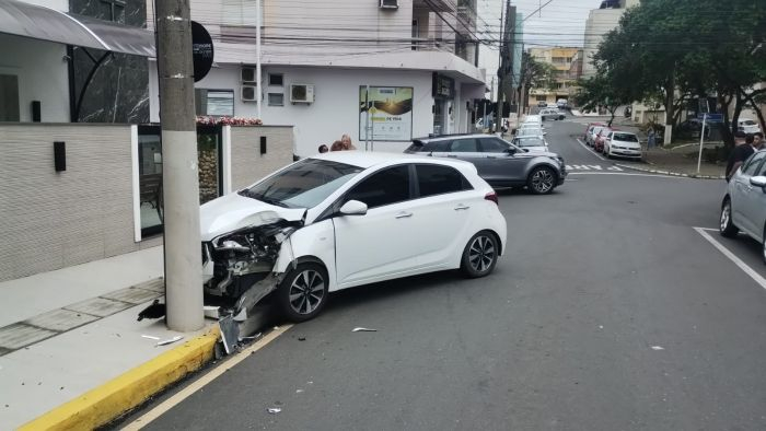 Nesta quarta-feira (1º), uma colisão entre dois automóveis deixou a parte frontal de um HB20 parcialmente destruída. "Dá pra ver ali que pelo tamanho do prejuízo, um dos dois veículos estava em alta velocidade. A Prefeitura faz a parte dela, sinaliza, coloca toda a sinalização. O problema realmente é a falta de atenção dos motoristas e o descumprimento com as normas de trânsito", ressalta Conceição.
