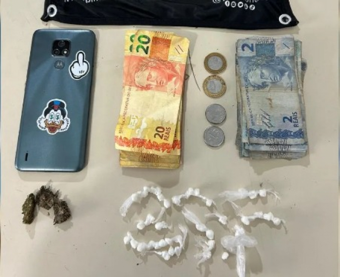 Ele foi apreendido com maconha, crack e dinheiro em espécie.