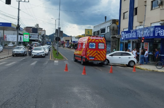 Uma ambulância do Corpo de Bombeiros foi atingida por um Chevrolet/Ônix na Avenida Felipe Schmidt, em Braço do Norte, nesta quarta-feira (14). O veículo oficial estava com sinais sonoros e luminosos acionados em deslocamento para uma ocorrência de queda de motocicleta.