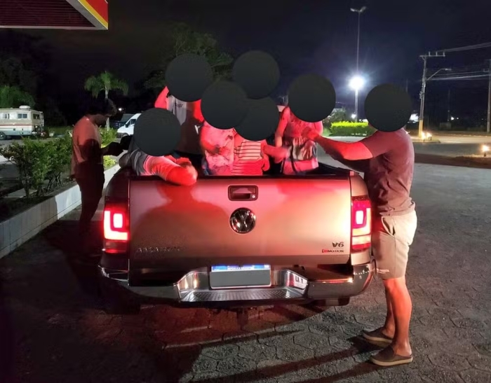 Um turista argentino foi parado pela Polícia Militar Rodoviária (PMRv) ao ser flagrado ao transportar cinco crianças e um adulto na caçamba de uma caminhonete. O caso ocorreu na noite de sexta-feira (10) em Florianópolis e o condutor foi multado.
