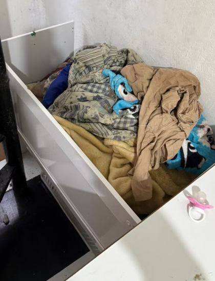 Ao vistoriarem a residência, policiais encontraram um ambiente insalubre, com paredes sujas, roupas rasgadas e riscos à segurança, como escadas sem corrimão. A bebê dormia sobre um colchão e cobertores colocados sobre pedaços de madeira de um móvel desmontado.