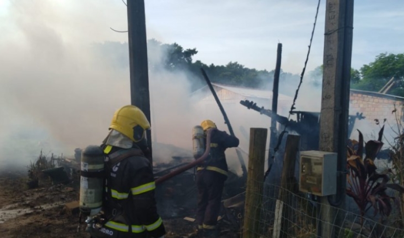 O Corpo de Bombeiros combateu um incêndio em uma residência de madeira de cerca de 40m², na localidade de Coloninha, em Araranguá. O incêndio estava em fase de desenvolvimento completo e já atingia toda a residência quando a guarnição chegou ao local.