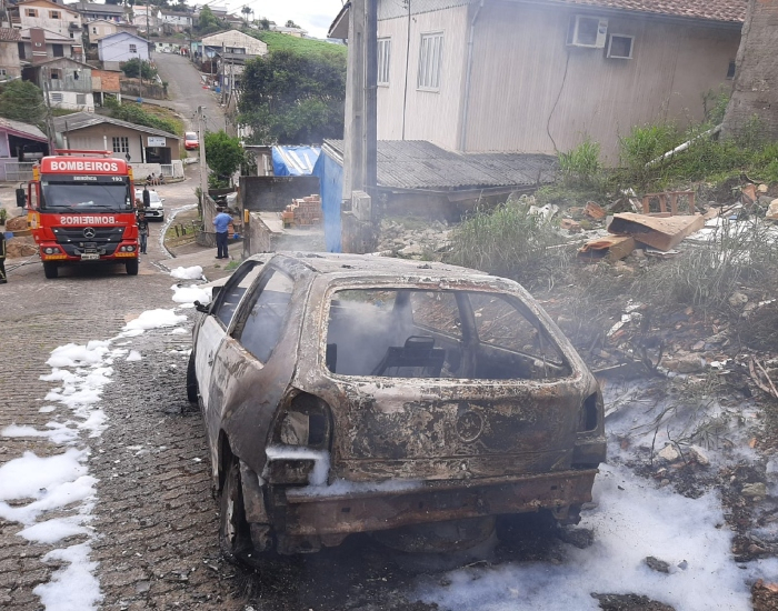 O Corpo de Bombeiros foi acionado no início da tarde deste sábado, dia 21, para combater um incêndio em um veículo que estava estacionado na Rua São Paulo, no bairro Alto Paraná, em Orleans. Segundo populares, um homem ateou fogo no carro e fugiu do local.