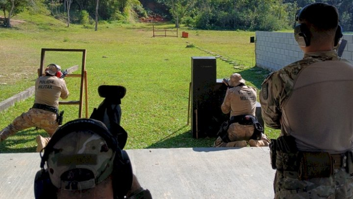 A capacitação teve como foco o aperfeiçoamento das técnicas de tiro com fuzil AR-15 equipado com miras eletrônicas, explorando diferentes posições de tiro e cenários de combate