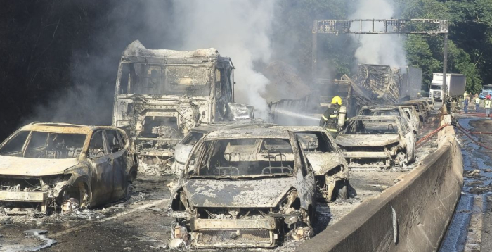Um ônibus que passava pela via contrária na hora do acidente conseguiu acelerar e escapar das chamas. Contudo, outros veículos foram consumidos pelo fogo. Segundo o Corpo de Bombeiros, em balanço feito junto com a Arteris Litoral Sul foram contabilizados 24 carros e três carretas atingidos pelo fogo.