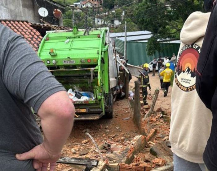 Foto: Divulgação Um caminhão de coleta de lixo perdeu o freio e acabou invadindo uma residência no bairro São Martinho, em Tubarão, nesta quinta-feira (30).