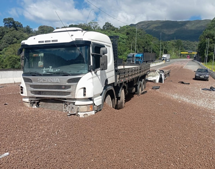 Já o motorista do caminhão, que estava sendo transportado no banco do passageiro do veículo de reboque, morreu ainda no local. O veículo que era transportado se desprendeu e passou por cima da cabine após o caminhão usar o dispositivo de segurança.