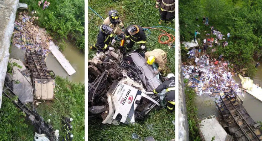 O veículo transportava produtos de limpeza, como sabão em pó e alvejante, além de alimentos. Após o corpo do homem ser tirado da carroceria, pessoas desceram e saquearam parte da carga. Imagens mostram populares até dentro da água para pegar os produtos, o que configura crime de furto.