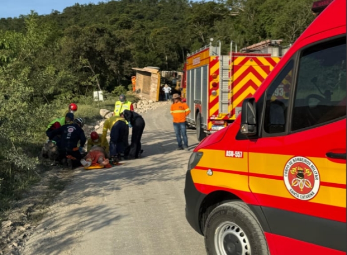 Um capotamento de caminhão foi registrado na tarde dessa terça-feira (25), na localidade de Ribeirão da Areia, em Pedras Grandes. O Corpo de Bombeiros Miltiar de Morro da Fumaça e Urussanga foram acionados para prestar atendimento por volta das 17h, na Estrada Geral.