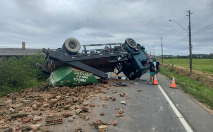 Um acidente de trânsito foir registrado na tarde desta segunda-feira (23), no bairro Naspolini, em Morro da Fumaça. O Corpo de Bombeiros foi acionado para atender a um capotamento de um caminhão de entulho.