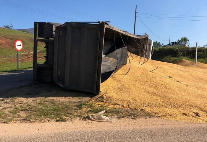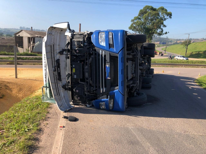 Um acidente de trânsito foi registrado na manhã dessa quinta-feira (5), na localidade de Morro Grande, em Sangão. Os Bombeiros Voluntários de Jaguaruna foram acionados por volta das 7h10 para atender a ocorrência, um tombamento de uma carreta.